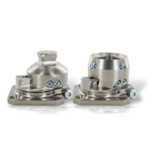 Adaptador de socket desplazable en titanio de cuatro huecos, un tornillo controla la rotación y otro el desplazamiento. Peso del dispositivo 154 gr soporte de peso 125 kg. Desplazable hasta 11mm